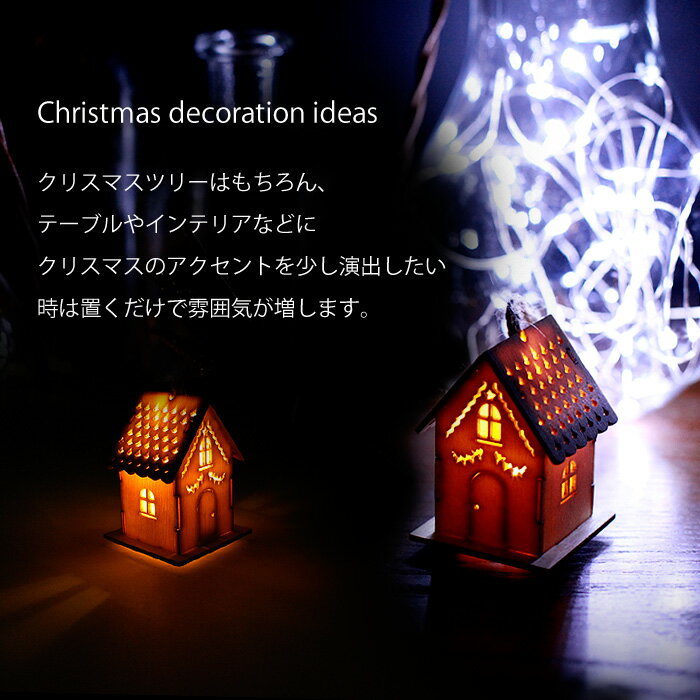 クリスマス オーナメント ウッドハウス木製 LED 電池式クリスマスツリー オーナメント 飾り 装飾 置物クリスマス オーナメント ウッドハウス 電池式スイッチON/OFFタイプ 電球色 クリスマスオーナメント ウッドハウス6個セット。