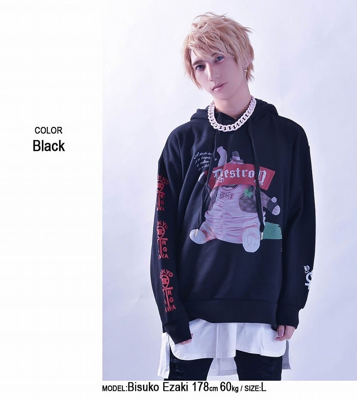 『東京裏側』DESTROY DOLL ビッグパーカー(男女兼用)■ドール ロゴ トップス プルオーバー パーカー リボン カジュアル ロック モード ヴィジュアル系 V系 原宿系 かわいい オーバーサイズ メンズ レディース ユニセックス