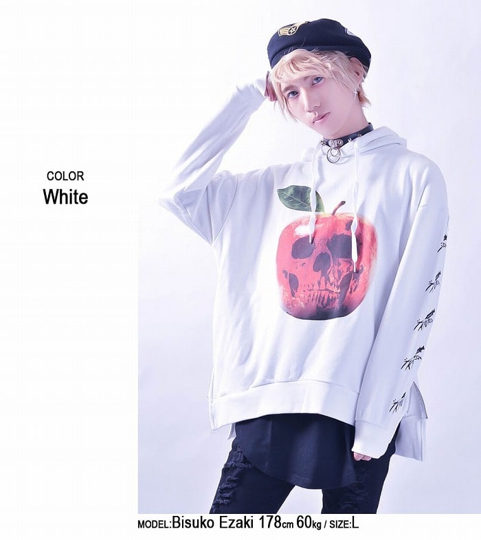 『東京裏側』POISONOUS APPLE ビッグパーカー(男女兼用)■リボン 病みかわ 病みかわいい かわいい V系 ヴィジュアル系 原宿系 ユニセックス ロック カジュアル モード リンゴ アップル ポイズン 毒 メンズ レディース 長袖 ジップ