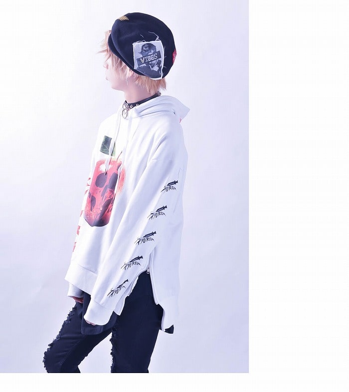 ロングTシャツ メンズ パーカー オーバーサイズパーカー インポート フードカットソー プルオーバーパーカー ビックプリント 送料無料 春 秋 冬 新作 個性的 V系 ヴィジュアル系 お兄系 ストリート系 ホスト 衣装 蛍光パーカー ブラック 黒 グレー