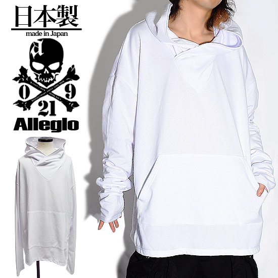 ロングTシャツ メンズ モード系 メンズ ビッグパーカー 大きいサイズ パーカー レディース ハイネック ニットソー ホワイト 白 アレグロ 個性的 V系 ビジュアル系 モード系 ファッション トップス 2020 春 秋 冬 新作 衣装 ユニセックス 裏毛 防寒 アウター allegro