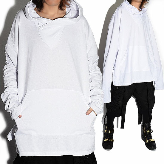 パーカー メンズ プルオーバーパーカー ロングパーカー 変形 ロングカットソー ワンピース 裏毛 スウェット 無地 ホワイト 白 フード お兄系 V系 ビジュアル系 ホスト 送料無料 秋 冬 新作 個性的 モード系ファッション ストリート系 衣装 ブランド ユニセックス レディース