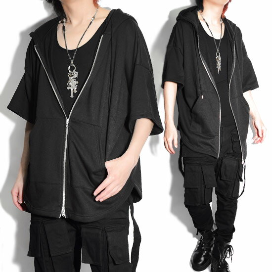 パーカー メンズ モード系 フルジップパーカー モードファッション レディース ユニセックス オーバーサイズ 変形 カットソー ブラック 黒 アレグロ 個性的 V系 ビジュアル系 ストリート系 モード系 ファッション 送料無料 2020 春 秋 冬 新作 衣装 アウター allegro