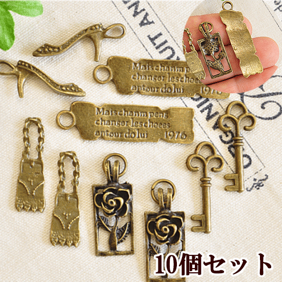 ファスナートップ チャームセット 10個 《 アクセサリー パーツ チャーム イヤリング セット ピアス アクセサリー ネックレス チャーム パーツ 》