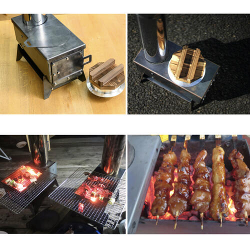 天板を外してかまどの中に十分におき火を作るとBBQや焼き鳥などの串物、様々な焼き料理も楽しめます。