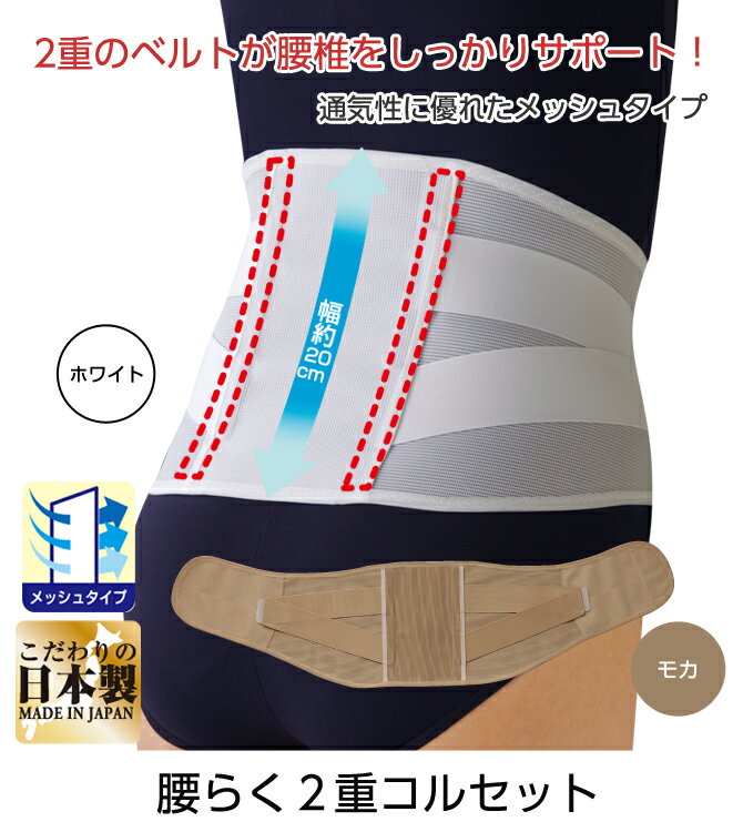 サポーター コルセット 腰 予防 腰痛 女性 対策 日本製 腰らく2重コルセット ホワイト